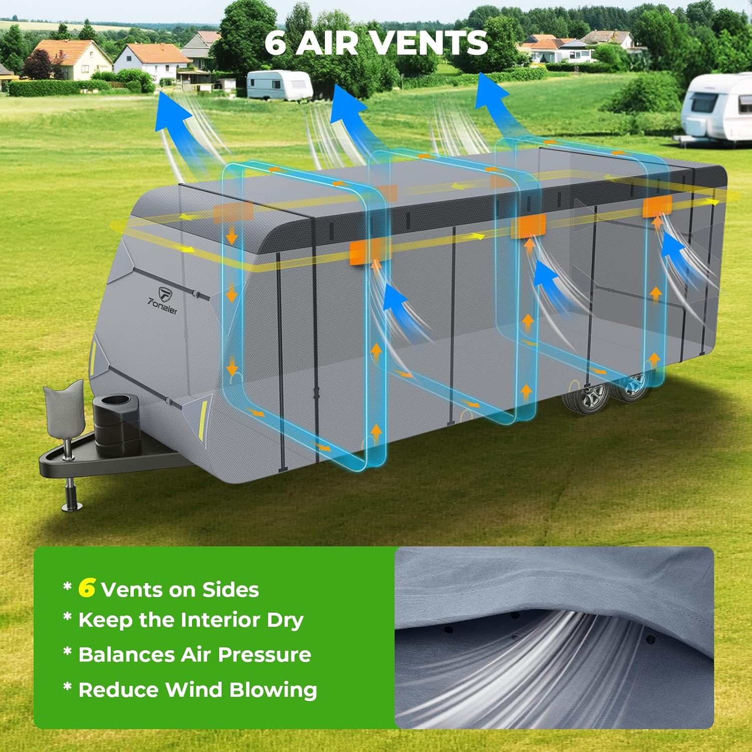 - 【Breathable & Easy Access】Six roofline air vents promote airflow to reduce moisture buildup and keep the cover dry and clean. Five upgraded zippers allow quick access and easier installation. Now also compatible with Toy Haulers.