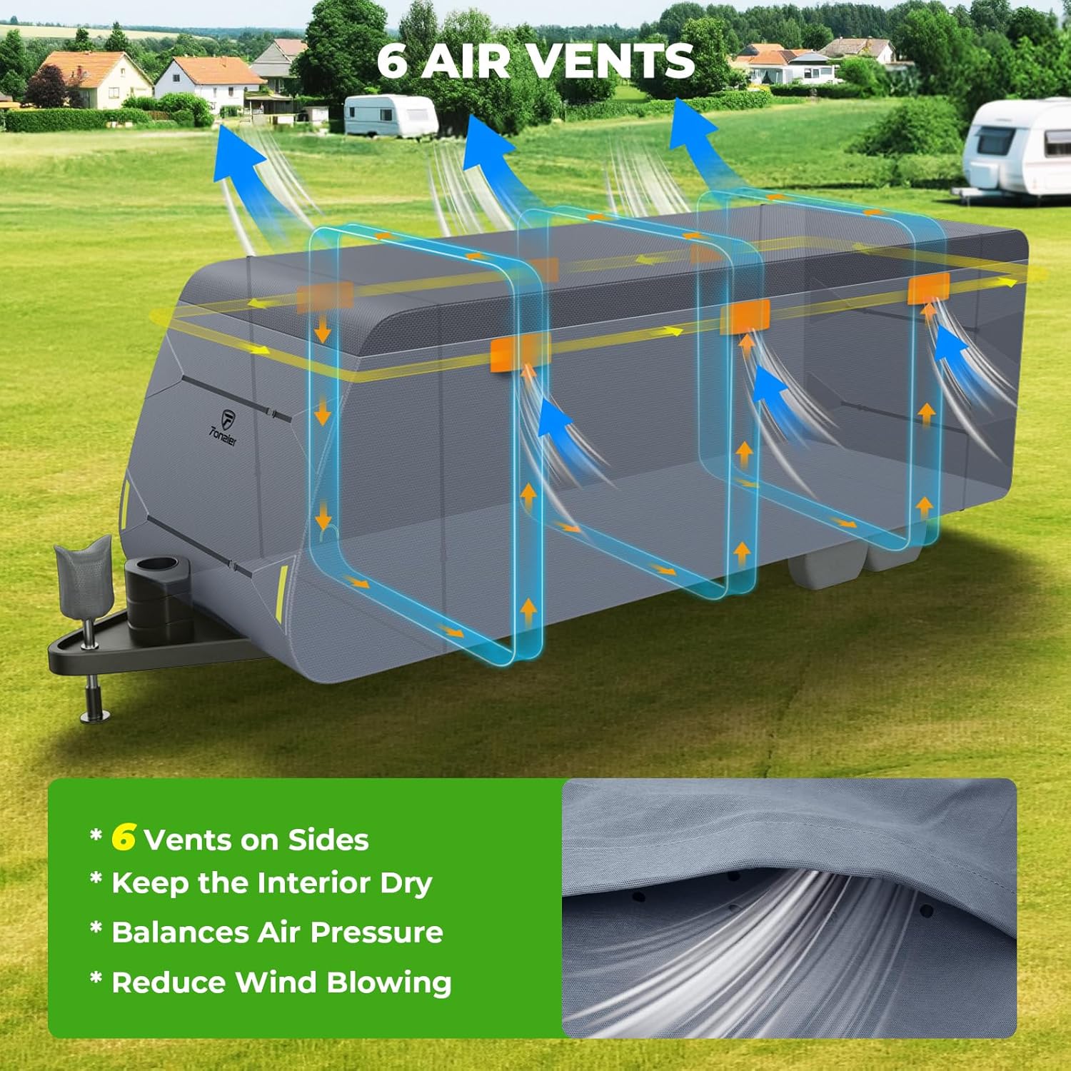 600D Oxford Topper Extra Thick 7 Layers RV Cover, Travel Trailer Cover for 20'1"-31'6", Waterproof Rip-Stop Windproof with 4 Tire Cover
