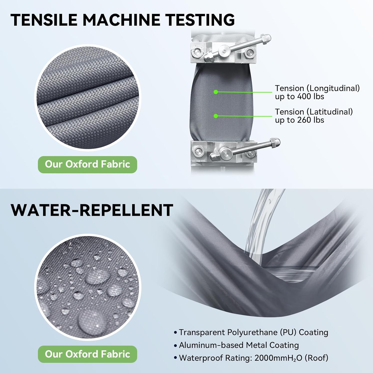 - 【Weather Resistance】The upgraded Oxford fabric is coated with polyurethane, providing a waterproof depth of up to 2000 mm. The ultra-thick 7-ply RV trailer cover offers protection against rain, snow, strong winds, bird droppings, dust, and scratches. It effectively reduces premature aging of your RV and extends the cover's lifespan