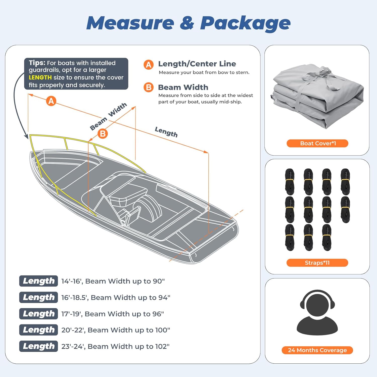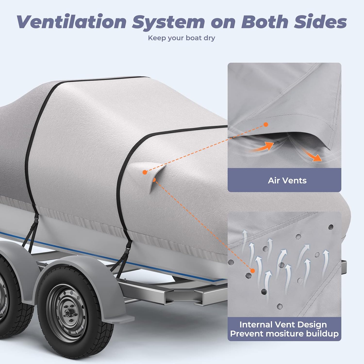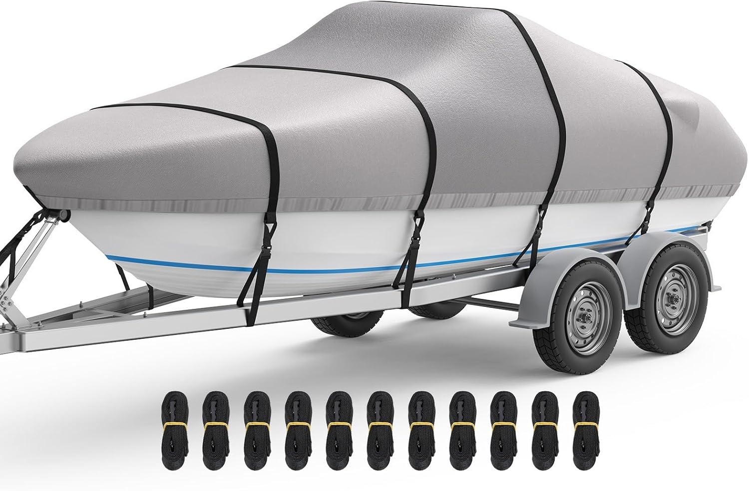 RVMasking Boat Cover, 1400D Heavy Duty Middle Reinforced, Waterproof Trailerable with Storage Bag for V-Hull, Tri-Hull, Fish & Ski, Runabout Bass Boat