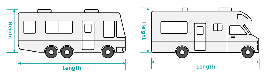 When measuring the height of the RV, Measure the trailer sidewalls at the highest point of the roofline down to the outside frame, including roof-mounted accessories, vents, and A/C units. excluding ground clearance, Remember, don't stop at the top of the wheel well!